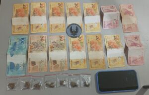 De acordo com os agentes, com o averiguado teriam sido encontrados R$ 300,00 em dinheiro, maconha e um celular que será periciado durante as investigações.