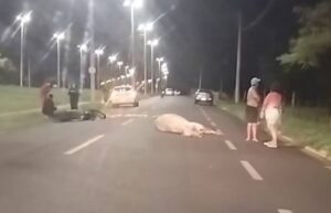 Na noite deste domingo, 19, foi registrado um acidente envolvendo uma motocicleta e uma vaca na Avenida das Nações, em Barretos.